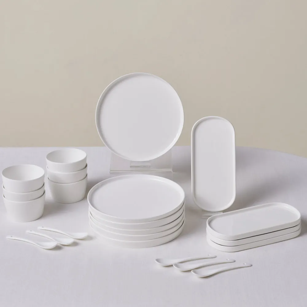 Karaca Forever Bone China Bomo 22-Piece Serveware Set for 6 People, White