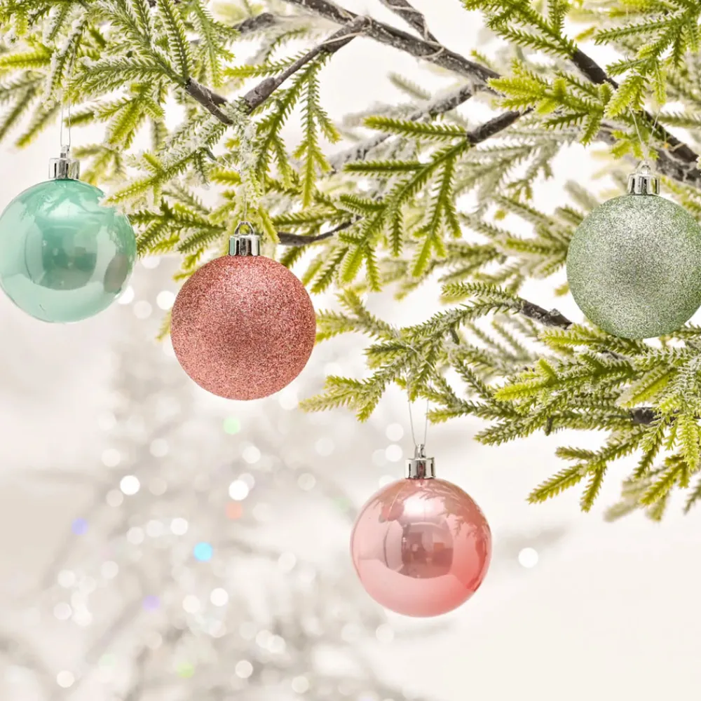 Karaca Home New Year Christmas Minty Pinky Tree Bauble Set, 12 Piece, 6cm, Multi