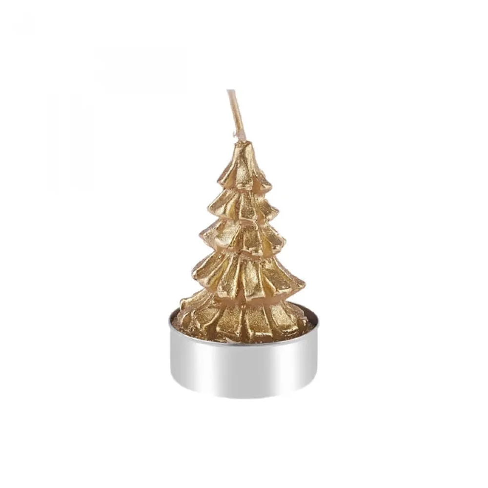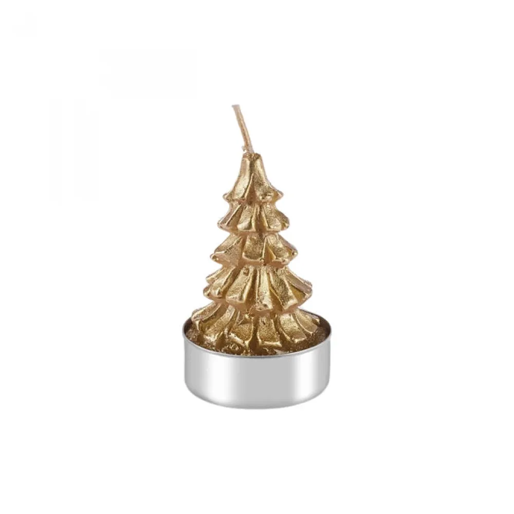 Karaca Home New Year Gold Tree 3-Piece Tealight Candles (3,8×3,8x7cm)