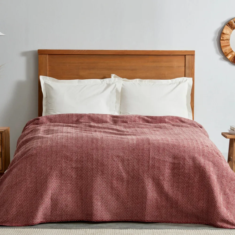 Karaca Home Sandra Herringbone Pattern Blanket, 200x220cm, Double, Burgundy