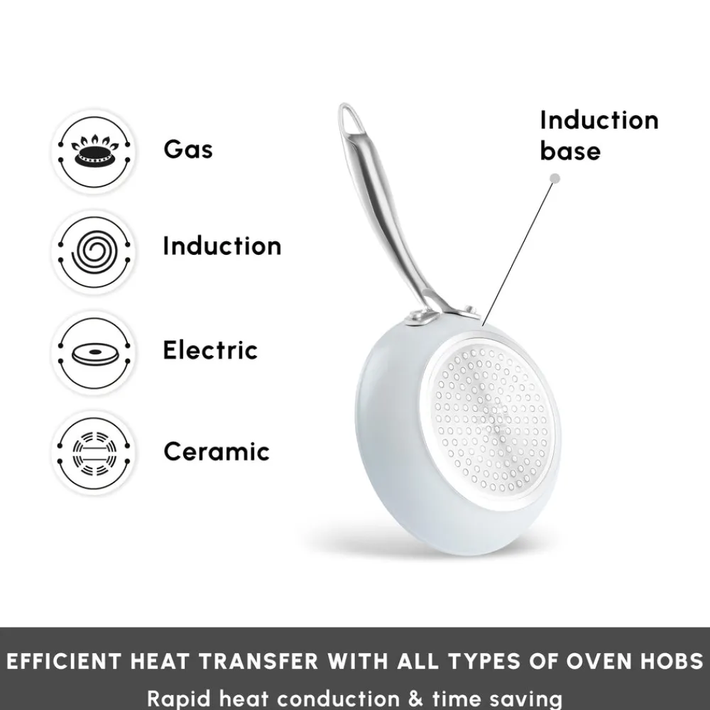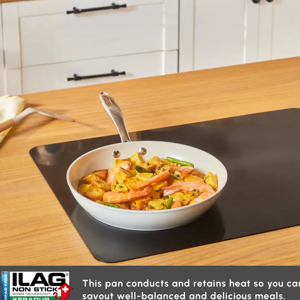 A brand-new pan set with superior non-stick qualities: SwissCrystal. Drawing its strength from the advanced non-stick SwissCrystal surface, the Karaca SwissCrystal Pan Set allows you to cook a wide variety of dishes – from eggs and fish to chicken – without the need for oil. The surface, infused with Swiss crystals, is free from potentially harmful chemical compounds such as PFAS, ensuring a healthier cooking experience. It’s also remarkably easy to clean – a brief soak in water is often all it takes. Designed with both practicality and performance in mind, this durable set is suitable for use in the oven, allowing you to effortlessly transition from hob to oven when preparing a variety of meals, and giving you even more versatility in your everyday cooking.