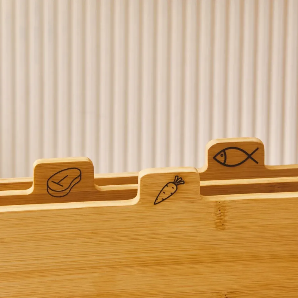 Karaca Triple 4-Piece Bamboo Chopping Board Set with Stand, Wood