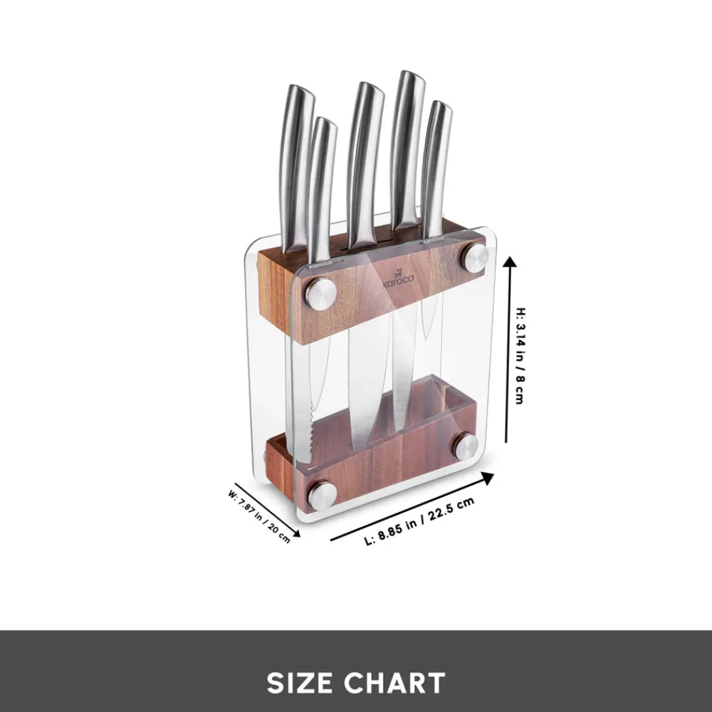 Karaca Venus 6 Piece Knife Set with Block, Silver